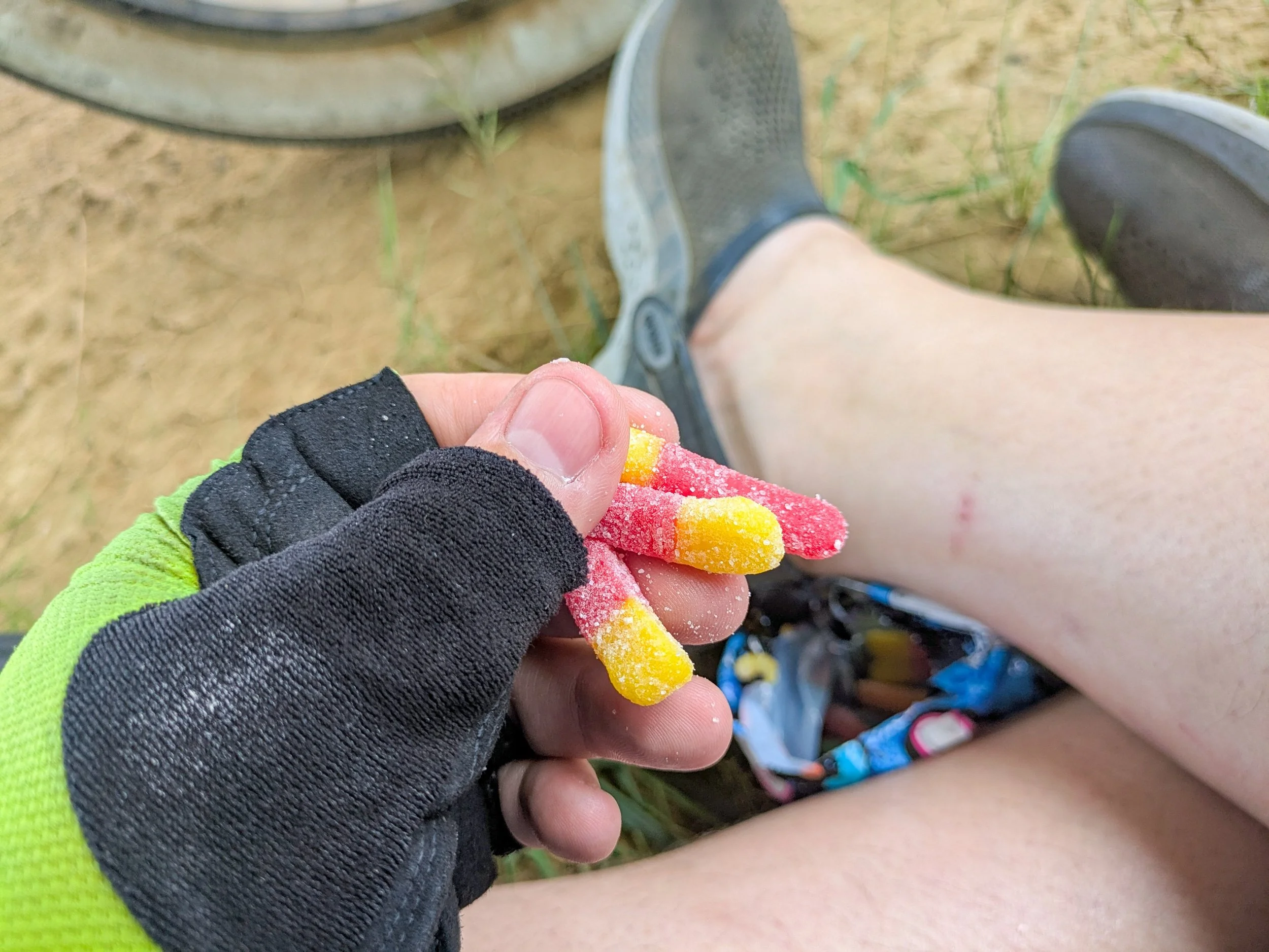 The 22 miles to Belfield were largely just wide open spaces with sparse housing. Mostly open grassland with a few farms dotting the landscape. Otherwise it was not significantly different other than being oppressively hot. To this point I estimate I had worked my way through over two gallons of fluid and my muscles were starting to flag. So I found the only cover that I could — a highway underpass and had some gummy worms to try and boost my energy.