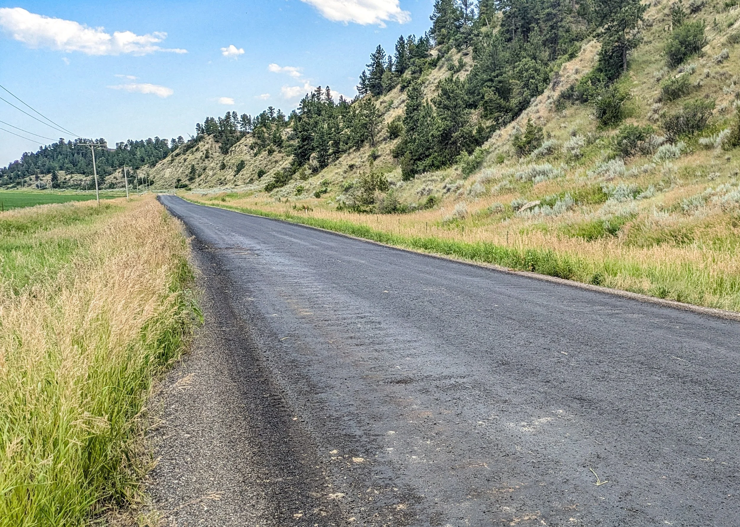 I was greeted with what I can only describe as The Road to Hell. It was packed gravel and dirt, sprayed with some form of oil or tar. I’ve been over such surfaces before, but this particular road had washboard ruts that went as deep as two inches in places, and there was no pattern to their rutting. It was painful and rattling to the point that parts started to come loose on my bike. The nut holding the crossbard for the roof of my trailer is now somewhere in the Montana wilderness. The ties that I used to secure the aluminum frame shook loose. My left crank arm (pedal) needed to be tightened over and over and over.
