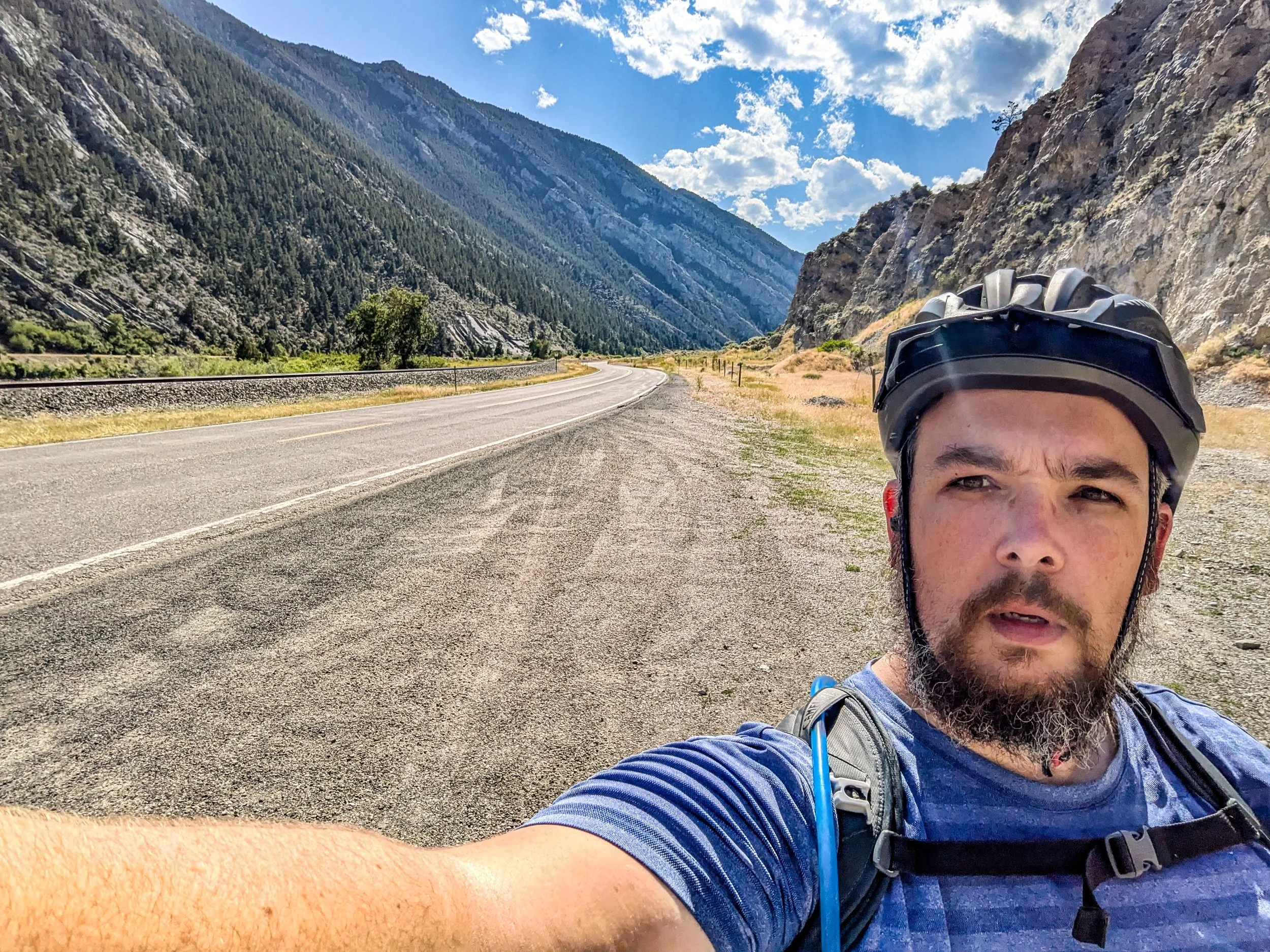 His name is Merlin — Named after the bird, not the wizard — and he had just biked up from Yellowstone park, which if I were to fully follow this road I would eventually reach. He started his tour at a friends house and is headed out East. I cant recall exactly where, I believe he's headed back home to Ohio.
